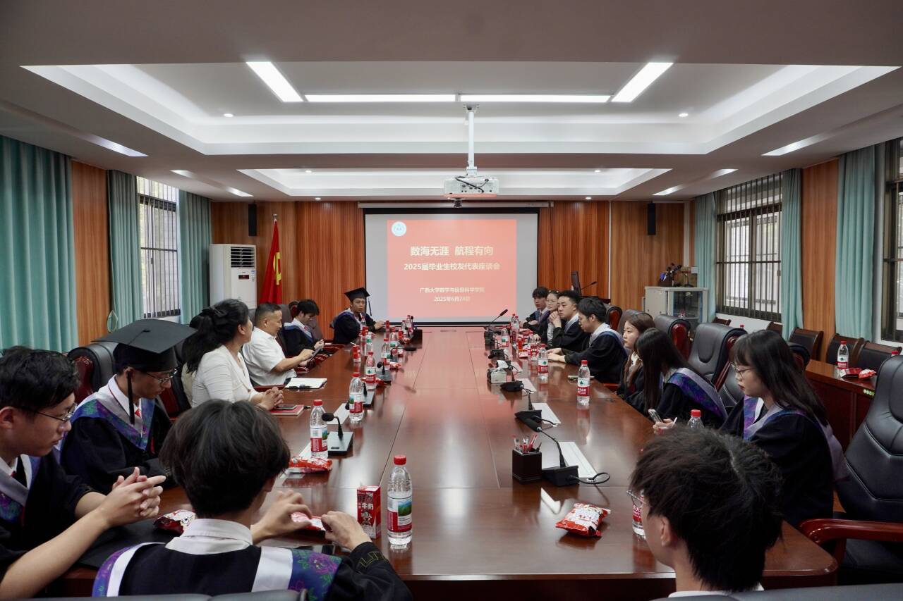 在2025届毕业生校友代表座谈会上,院长郭真华首先祝贺同学们顺利毕业,将作为又一批77779193永利官网数信学院优秀校友开启新的征程,创造新的成就,希望2025届毕业生校友们向永利官网优秀校友张誉学习,学习他坚持以数学思维领航创业方向,扎根八桂大地艰苦奋斗;学习他心系母校,饮水思源,为师弟师妹做榜样。郭真华郑重寄语全体2025届毕业生校友,以榜样为明灯,传承奋斗薪火,未来亦不忘以赤诚之心反哺学校、学院。