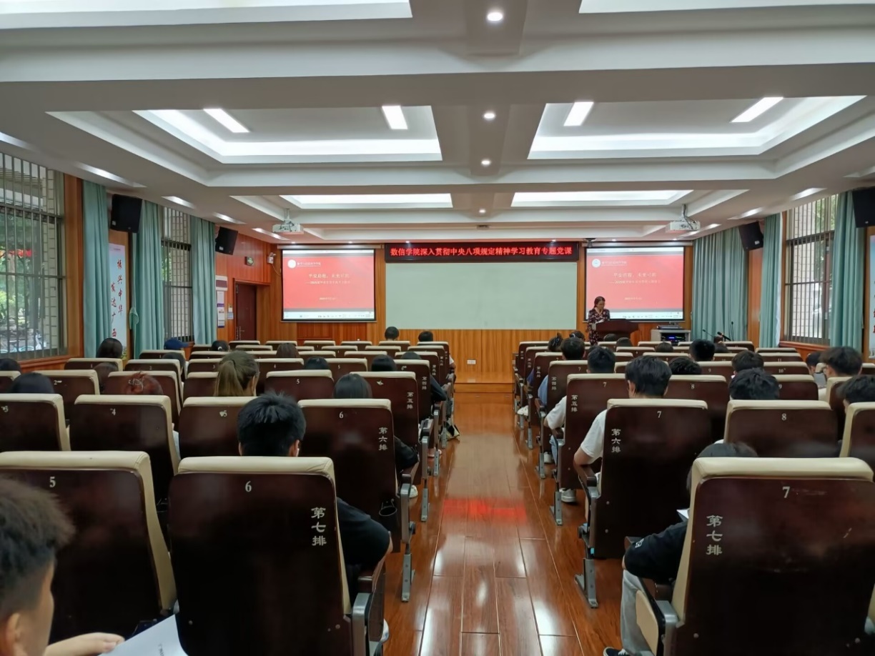吴华丽首先向圆满完成学业的毕业生党员表示祝贺,并对他们未来的发展寄予厚望。党课上,吴华丽强调,党员身份不仅是荣誉,更是责任,毕业生党员即将步入社会,面临全新挑战,要时刻保持政治敏锐性,做到“勤”“严”“实”“新”,深入学习贯彻习近平新时代中国特色社会主义思想,以党的创新理论武装头脑,不断提升政治素养,在复杂多变的环境中坚守正确政治方向,维护党的形象。