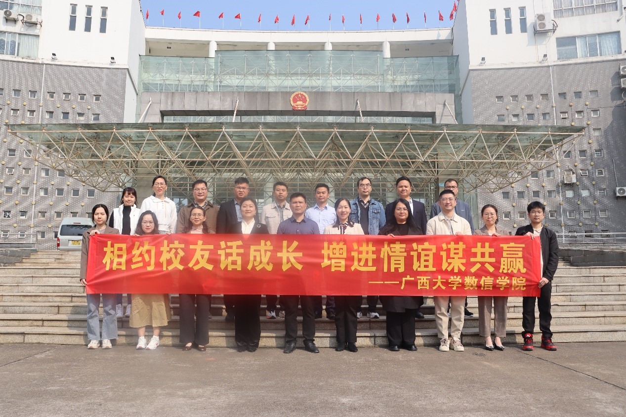 校友座谈环节,12名参加座谈的校友逐一作了交流发言,大家纷纷表达了自己对母校和数信学院的感激之情,分享了自己在贵港的工作和成长经历,积极为学校和学院发展献言献策。选调生代表,数学与应用数学专业2004届毕业生李丽结合自己扎根贵港20余年的基层工作经历和心得体会为学院进一步做好选调生工作提出建议;信息管理与信息系统专业2009届毕业生韦家军和信息与计算科学专业2010届毕业生段成强分别结合自身在私营企业和国企的工作经历,分享了自己对“服务家乡建设”和“创新精神”的深刻认识。